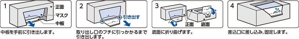 ●本体の枚数が少なくなってきたら箱内部の中板を引き出すことで、マスクが手前までスライドするため、最後まで取り出しやすい設計です。