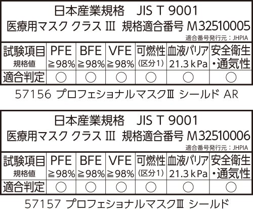 ●日本産業規格「JIS T 9001」医療用マスク クラスⅢに適合しています。